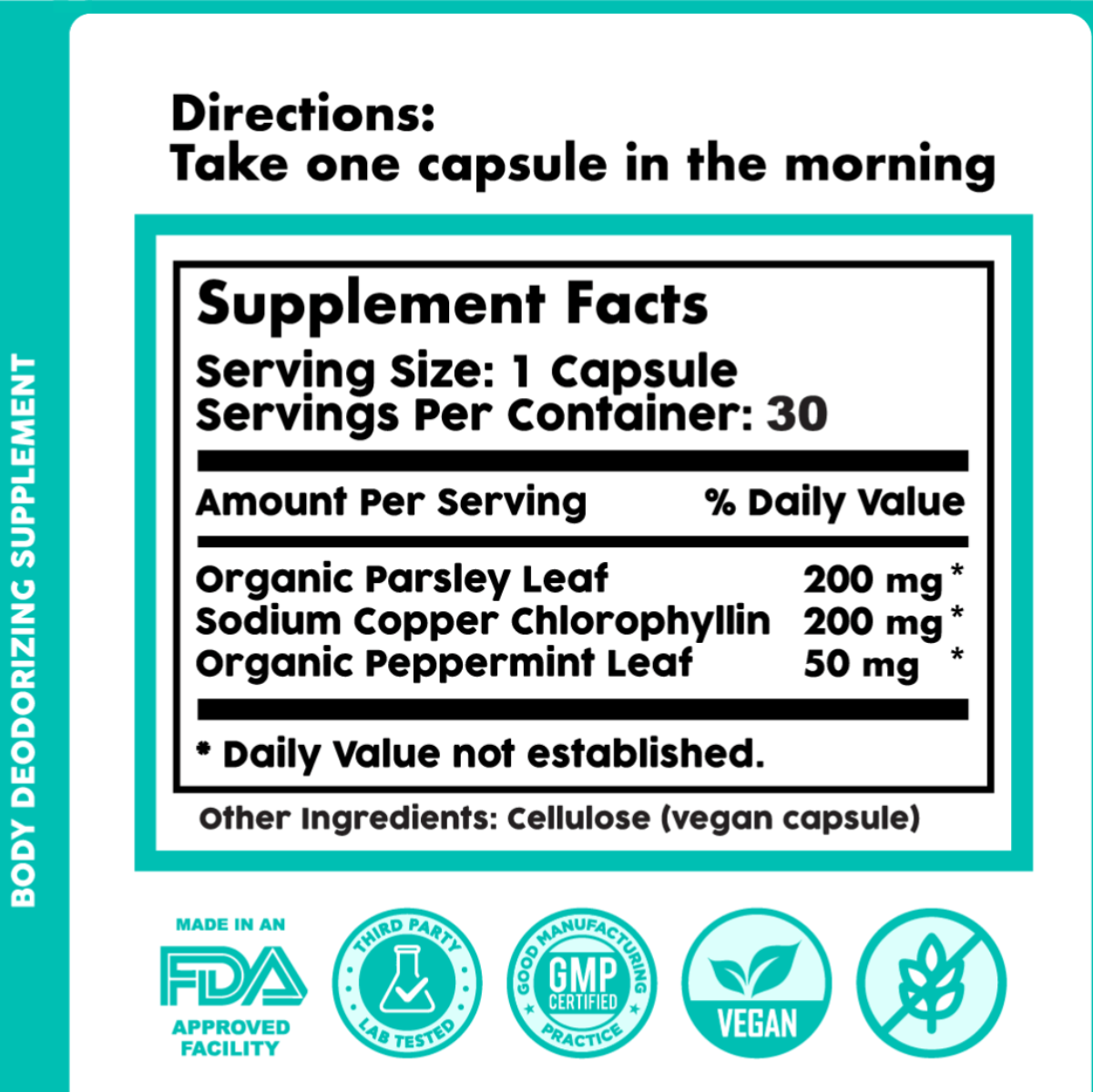 Ja! Deox is gemaakt van 100% natuurlijke ingrediënten, waaronder chlorofyl, biologisch peterselieblad en biologische munt-extract. Onze capsules worden geproduceerd in door de FDA-geregistreerde faciliteiten en zijn veilig voor dagelijks, langdurig gebruik. Zoals bij elk supplement: raadpleeg je zorgverlener als je specifieke medische aandoeningen hebt.
